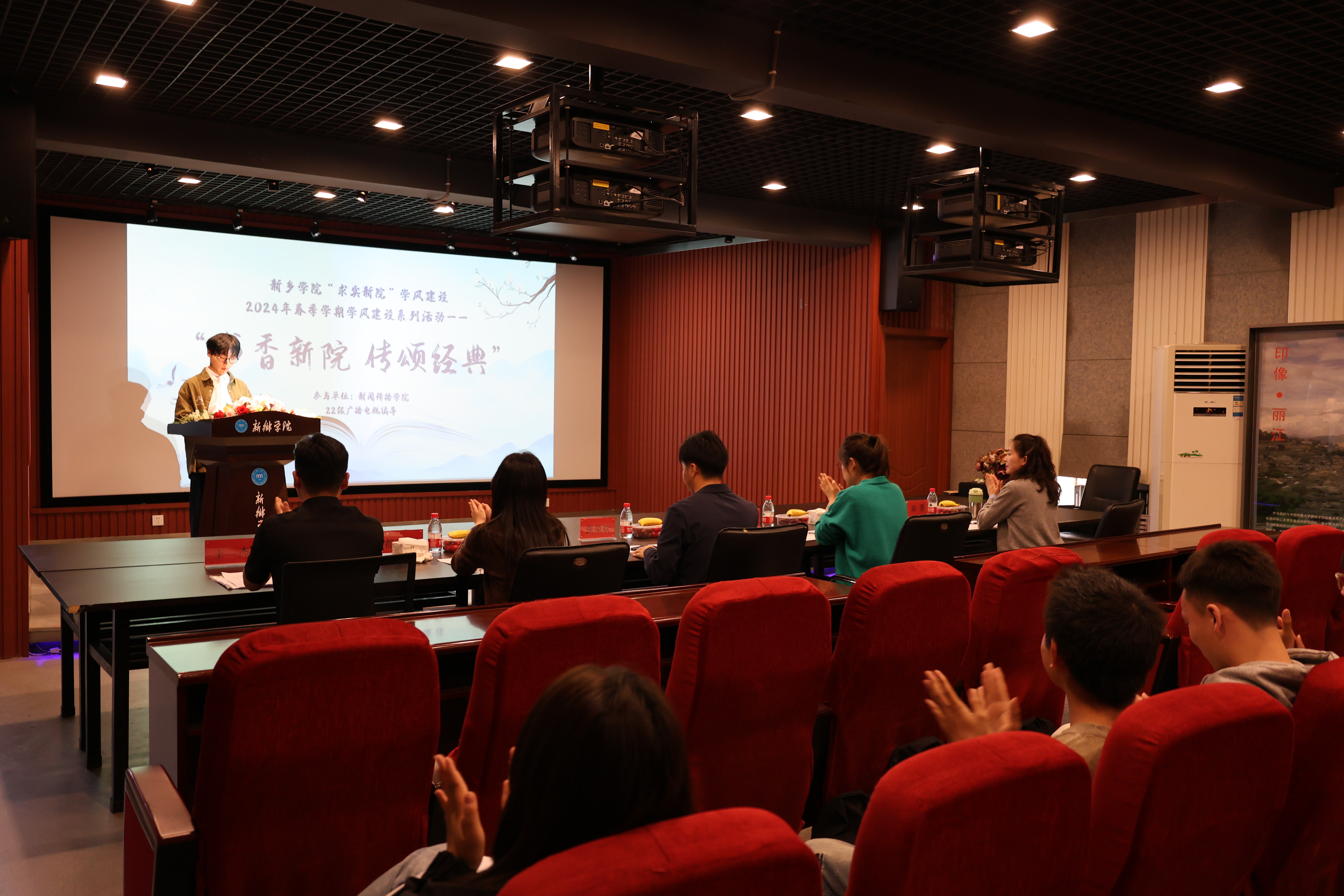 活动伊始,各班负责人组织同学有序入座。22级广电2班同学夏诗童担任主持人,30余名同学以朗读、朗诵、演讲、PPT展示等多种形式分享自己喜爱的书籍和读书心得,内容涵盖书籍简介、亮点精华、个人感受和启示,以及读后的实践和运用等。