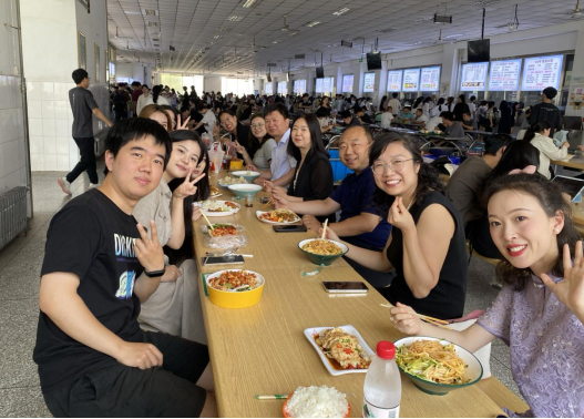 6月17日中午,副校长韩辉深入学生餐厅,与tyc234cc太阳成集团2024届毕业生共进午餐,寄语送别。tyc234cc太阳成集团党委书记王卫锋、院长马东俊、副书记贾菁、副院长孙桂杰,学院学工办、分团委和毕业生辅导员老师一同参加。