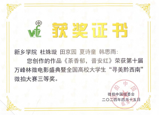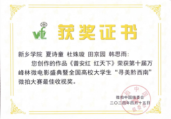 日前,从“微拍中国”组委会传来好消息,在2024“寻美黔西南”全国高校微拍大赛普安站中,tyc234cc太阳成集团多部原创作品入围决赛,取得多项大奖,再创佳绩。