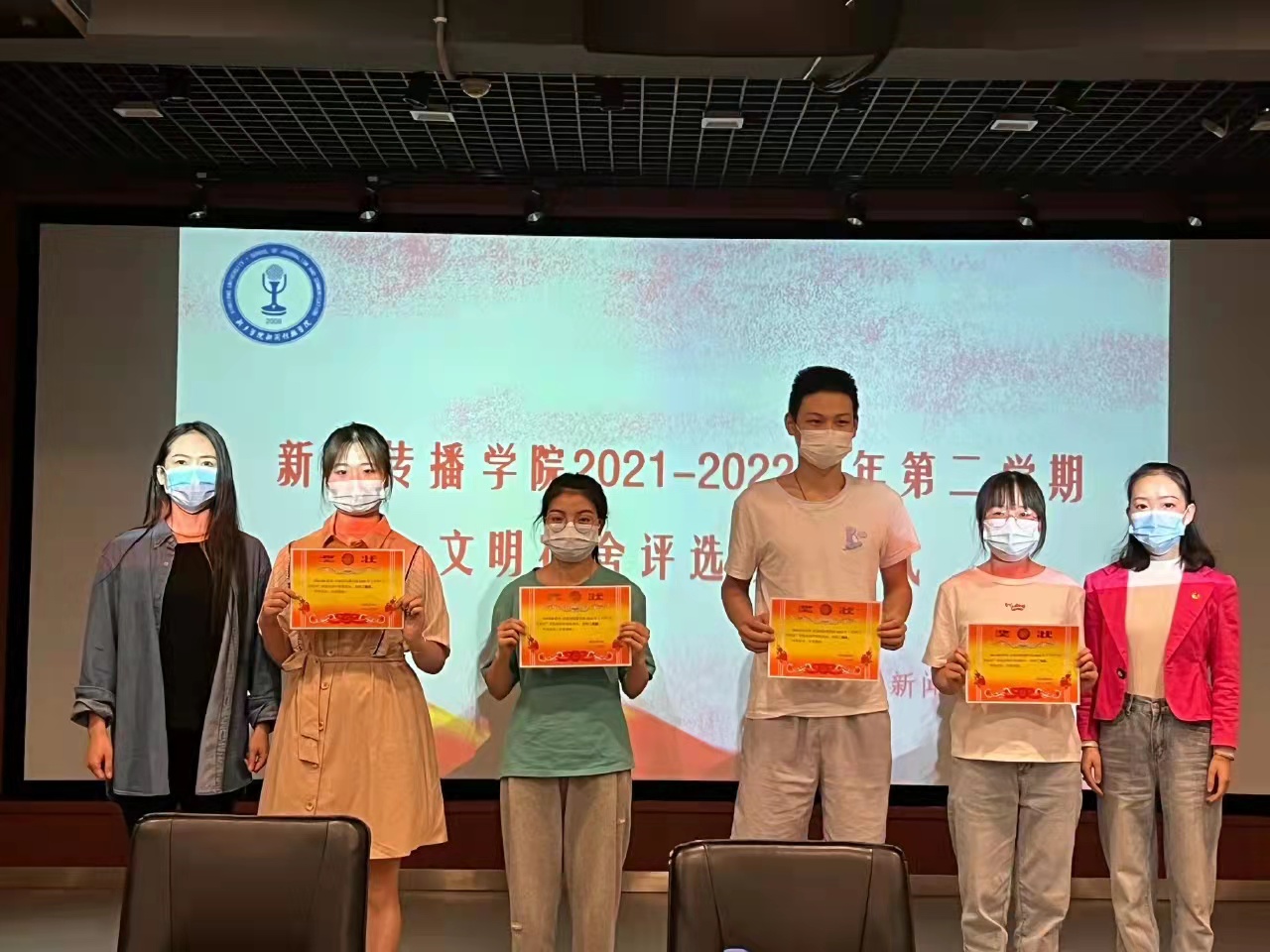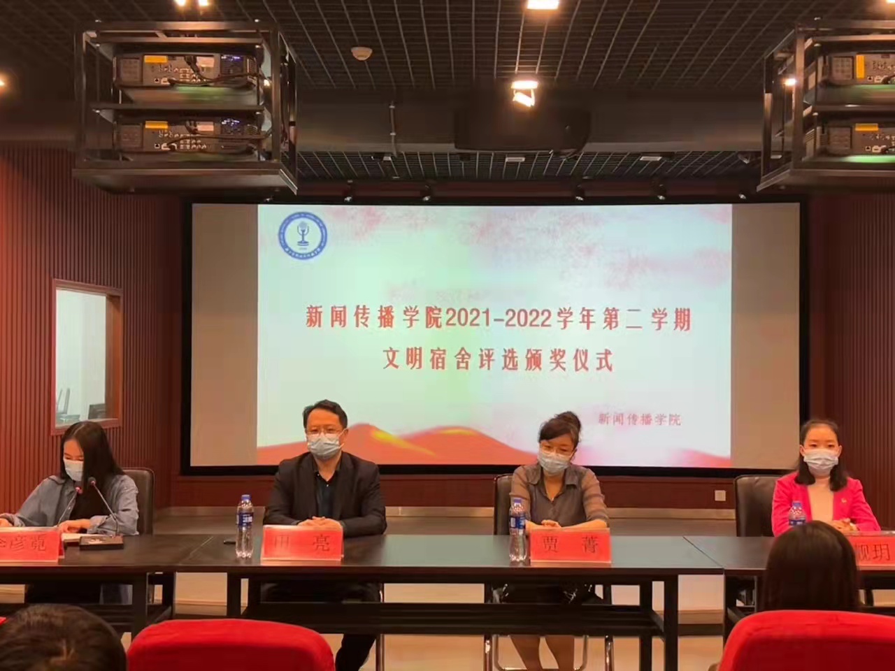 2022年5月3日下午四点三十分,tyc234cc太阳成集团于A12五楼审片室举行文明宿舍颁奖仪式。出席本次颁奖仪式的有太阳集团tyc234cc学生处副处长田亮,tyc234cc太阳成集团党委副书记贾菁、学工办主任李彦霓、团委书记肖靓玥以及各辅导员和获奖宿舍代表,此次颁奖仪式由tyc234cc太阳成集团学生会成员李志纹主持。