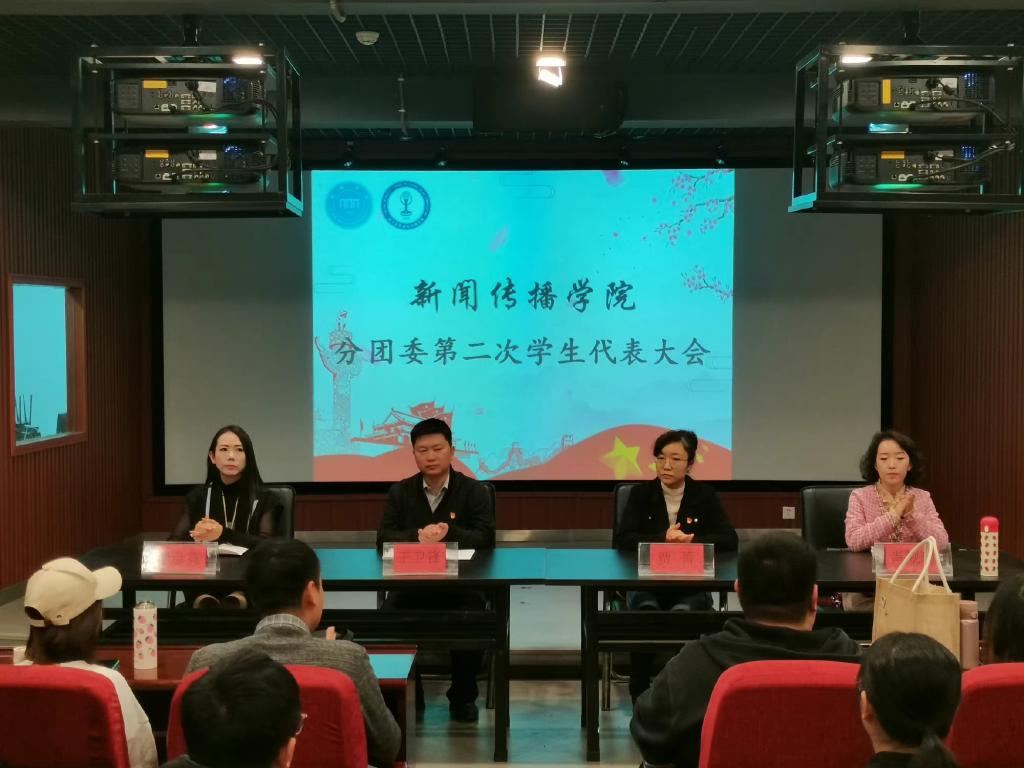 2021年10月14日12点30分,tyc234cc太阳成集团第二次学生代表大会在A12审片室隆重召开。出席本次会议的老师有tyc234cc太阳成集团党委书记王卫锋、党委副书记贾菁、学工办主任李彦霓,团委书记肖靓玥、辅导员王星、尹智毅、常小羽、张莎莎、张夏、曹菁、耿婉玥,以及学院各班的学生代表。会议由tyc234cc太阳成集团团委副书记李瑞彤主持召开!