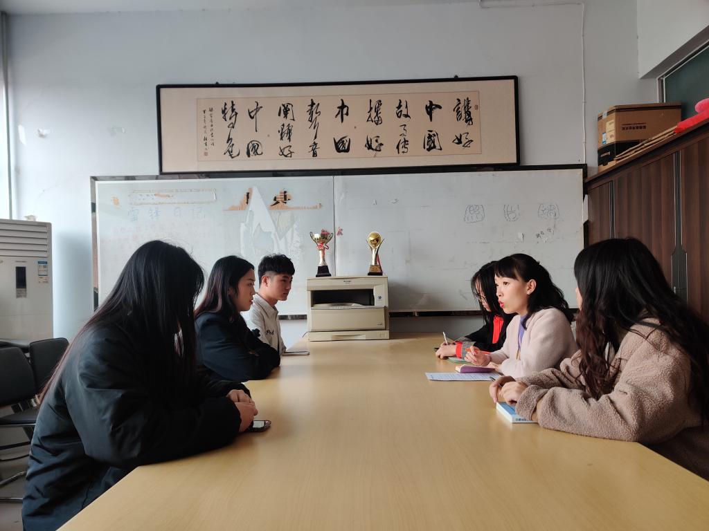 2021年3月17日下午4点10分,tyc234cc太阳成集团在A14五楼分团委学生会办公室举行“挂靠我院分团委社团”座谈会。零点剧社、逆光影团、曲艺团等八个社团的负责人到场参加座谈会。tyc234cc太阳成集团分团委书记肖靓玥老师主持会议。