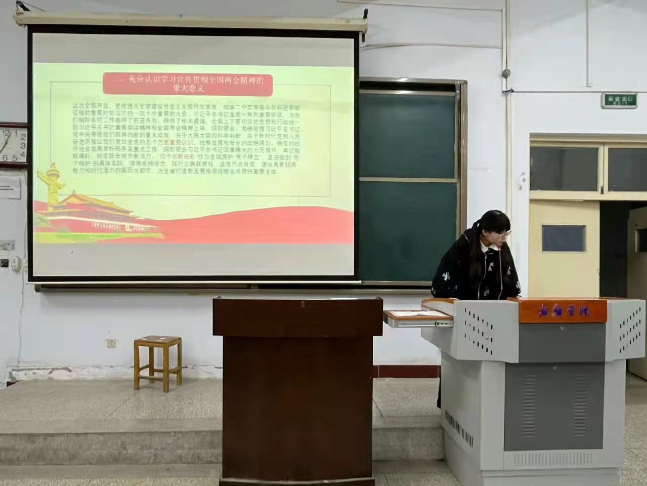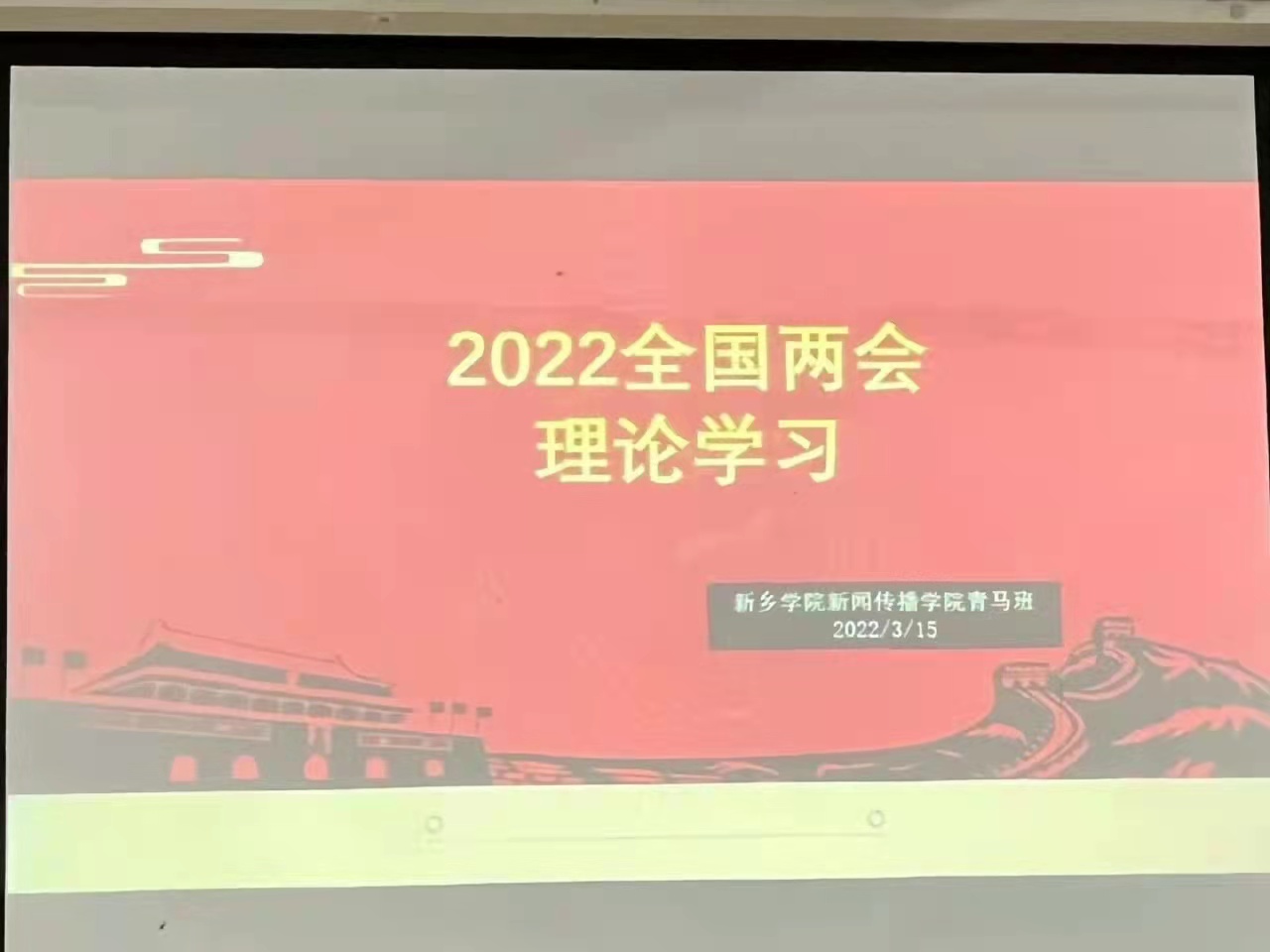 2022年3月15日晚上七点,tyc234cc太阳成集团于A11-225开展第七期青马班第三次培训,由第七期青马班团支书马文琦主持。此次培训的主题是学习2022年全国两会主要内容,全体青马学员认真记录、共学共进、收获颇丰。