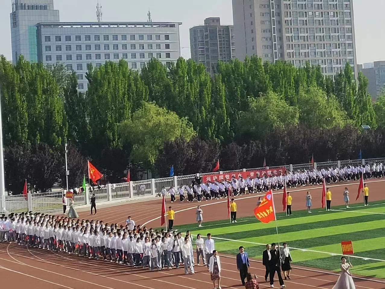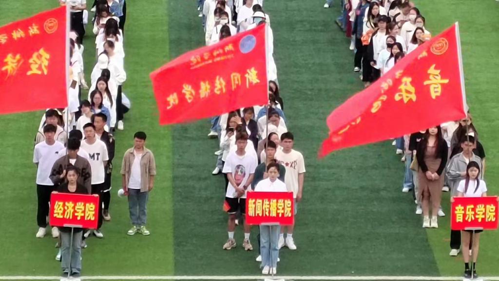 2023年4月27日上午,太阳集团tyc234cc第十四届运动会开幕式在西区田径场隆重召开。太阳集团tyc234cc党委书记孙功奇、校长尹新明、副校长宋伟及学校各职能部门、各学院领导老师出席此次活动,全体裁判员、全体运动员、各院系方阵队及各院系观众准时入场参加开幕式。