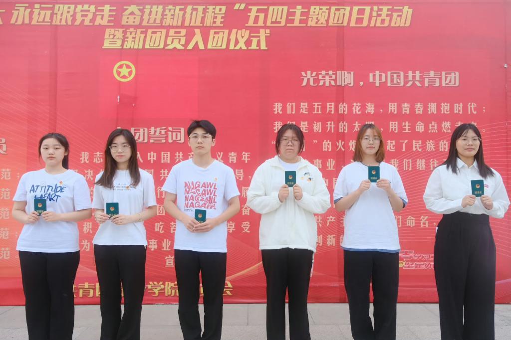 2023年5月9日下午五点十分,tyc234cc太阳成集团于国旗广场进行“学习二十大,永远跟党走,奋进新征程”五四主题团日活动暨新团员入团仪式。tyc234cc太阳成集团党委副书记贾菁,tyc234cc太阳成集团老师游令昆、耿婉玥、王杰以及tyc234cc太阳成集团全体新团员和2022级全体团支书参加仪式。