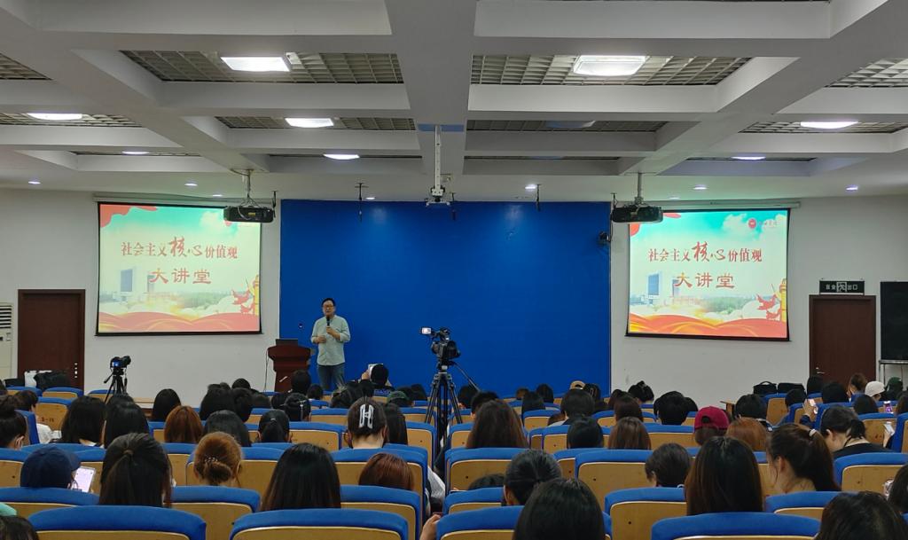 为深入贯彻党的二十大精神,把社会主义核心价值观落实到教育教学的各个环节,引导广大青年树立良好的价值观,深入理解社会主义核心价值观的内涵,2023年5月30日下午,tyc234cc太阳成集团在A05教学楼一楼报告厅开展“社会主义核心价值观大讲堂之富强篇”的宣讲活动。2021年度太阳集团tyc234cc师德先进个人王融化老师受邀为200名学生讲授了一堂生动精彩的公开课。