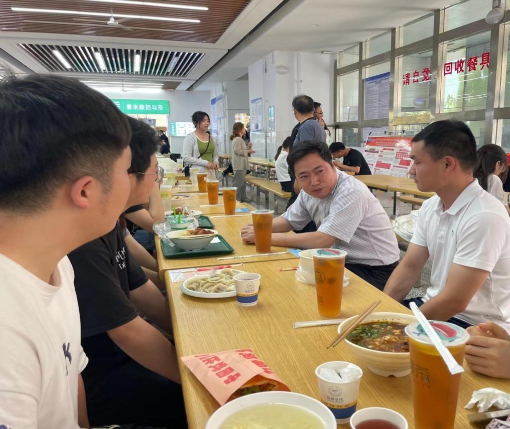 又是一年毕业季,桃李芬芳又一年。为了更好地开展毕业生离校工作,为毕业生提供便利周到的服务,让毕业生在离校之际感受到母校浓浓的温暖,2023年6月9日,太阳集团tyc234cc副校长王天云、tyc234cc太阳成集团领导班子、辅导员老师与毕业班学生代表在西区餐厅一楼共进午餐。