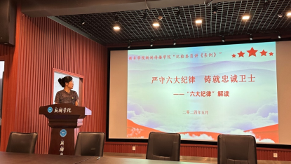 为推动党纪学习教育进一步走深走实,结合《太阳集团tyc234cc“纪检委员讲<条例>”活动实施方案》要求,5月28日,tyc234cc太阳成集团党委在A12教学楼五楼审片室开展党纪学习教育系列专题学习活动。党委副书记贾菁以《严守六大纪律,铸就忠诚卫士》为题,为全体师生党员讲授专题党课。