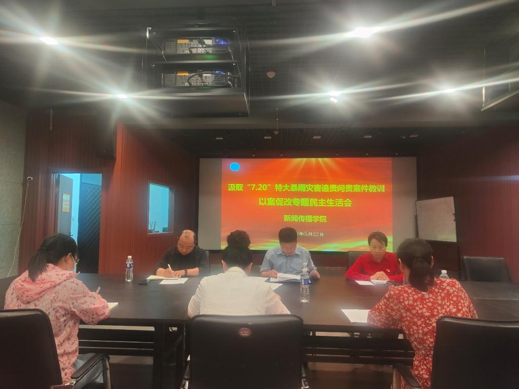 5月22日下午,根据《中共太阳集团tyc234cc委员会关于处级单位领导班子及班子成员深刻汲取“7·20”特大暴雨灾害追责问责案件教训开展以案促改专题民主生活会的通知》(院党字〔2022〕46号)要求,tyc234cc太阳成集团领导班子全体成员在A12教学楼5楼审片室召开汲取“7·20”特大暴雨灾害追责问责案件教训以案促改专题民主生活会,校党委巡查办陈改茶同志代表校纪委列席会议。会议由学院党委书记王卫锋主持。