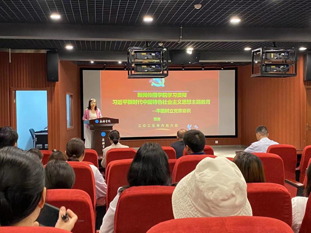 为深入推进学习贯彻习近平新时代中国特色社会主义思想主题教育走深走实,引导党员牢固树立党章意识,自觉做党章的坚定执行者和忠实捍卫者。6月6日下午,tyc234cc太阳成集团教师第一党支部书记贾菁以“牢固树立党章意识”为题,在A12五楼审片室为全体党员讲授了一堂生动的党课。