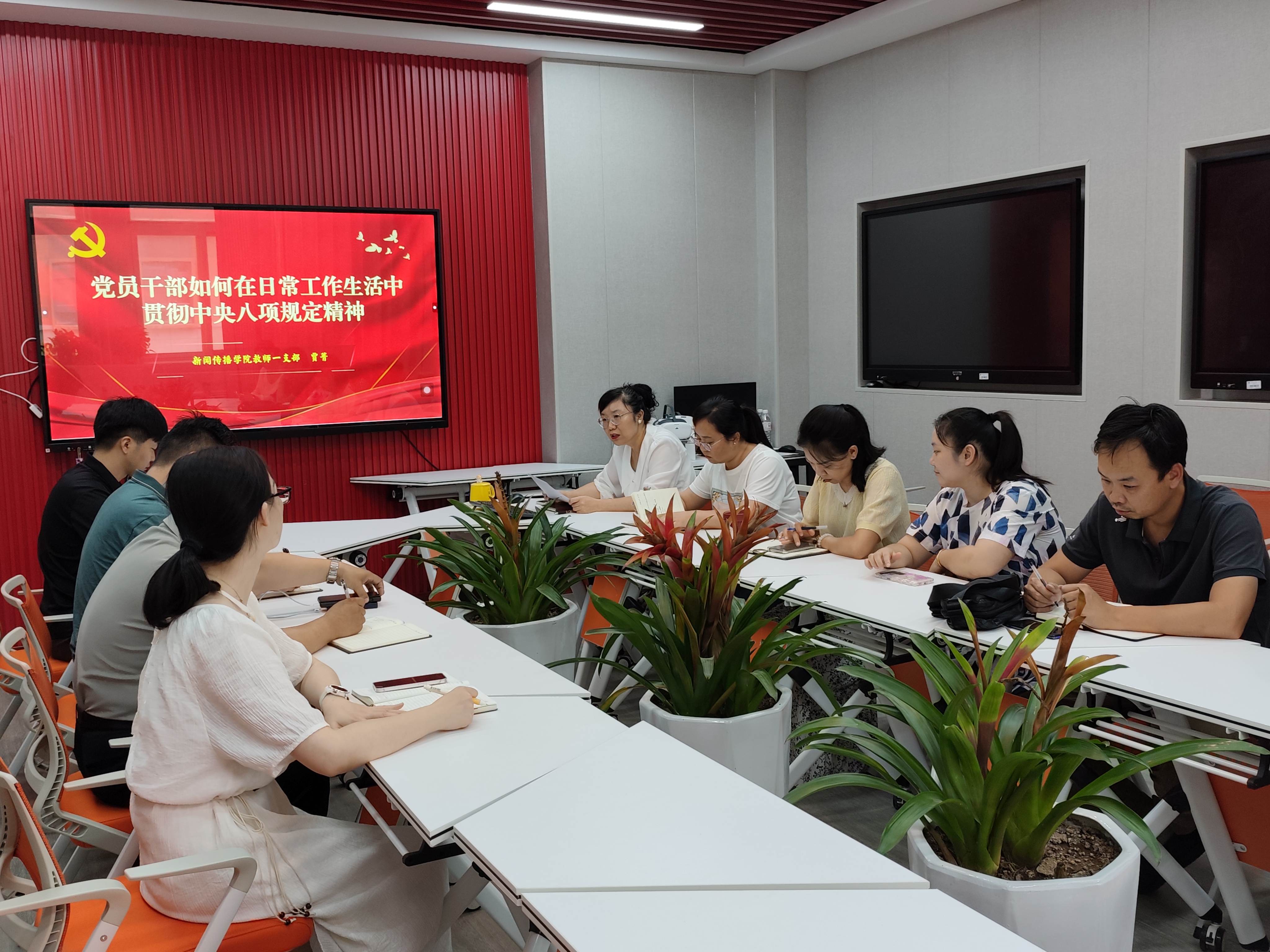 613日,新闻传播学院教师第一党支部A12号楼102室开展主题党日活动。党支部书记贾菁"党员干部如何在日常工作中贯彻中央八项规定精神"为主题讲授专题党课,支部全体党员参加学习。