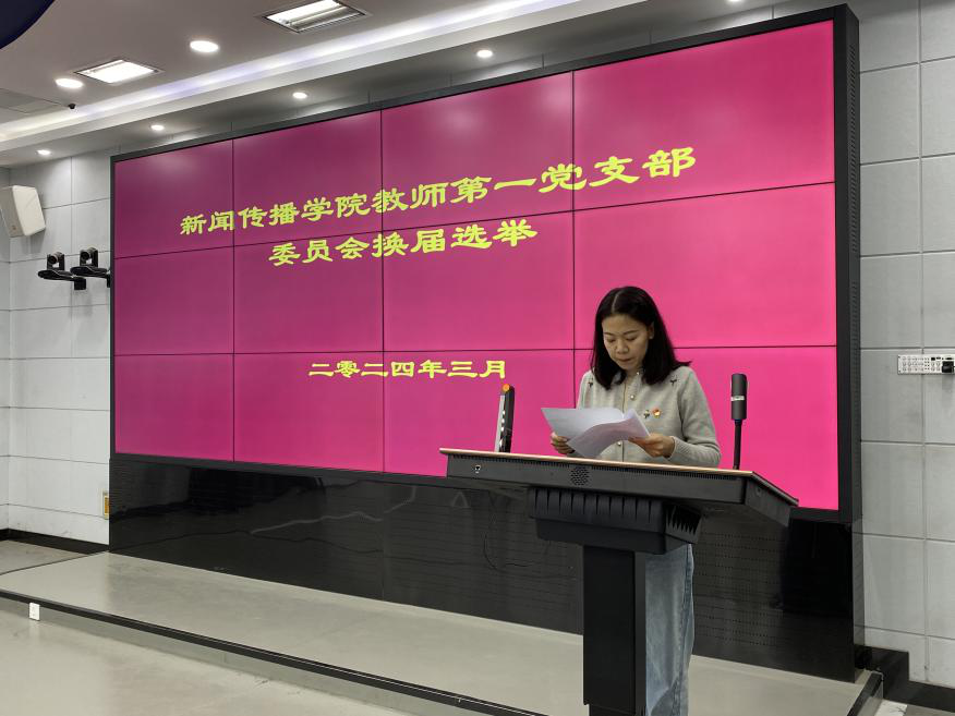 按照会议流程,在确认实到会有选举权的党员数超过应到会人数的五分之四时,大会宣布会议有效。首先由支部书记贾菁代表上一届支委会作工作报告,全面回顾了过去三年党支部的工作情况。接着统战委员王楠向大会报告换届选举筹备工作并介绍候选人基本信息,大会通过选举办法和监票、计票等工作人员。