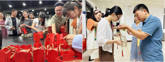 随后,在院党委副书记、分工会主席贾菁的带领下,全体教师开始动手制作中秋灯笼。老师们从挑选材料到设计步骤,再到亲手组装,每一个环节都倾注巧思与创意。灯笼设计充分融合中秋元素与时代气息,展现了老师们独特的艺术审美和良好的合作精神,现场洋溢着浓厚的节日气氛。