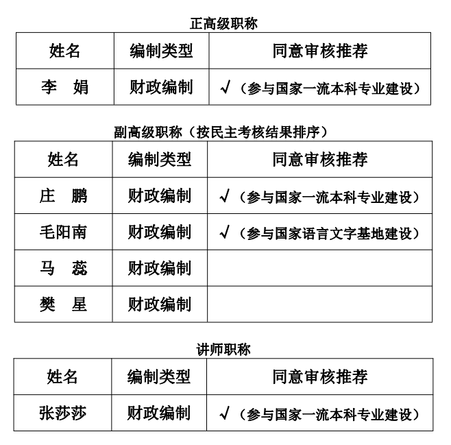 tyc234cc太阳成集团经基层民主审核投票,同意推荐李娟老师申报正高级职称,同意推荐马蕊、毛阳南、庄鹏、樊星老师申报副高级职称,同意推荐张莎莎老师申报中级职称,详细结果如下: