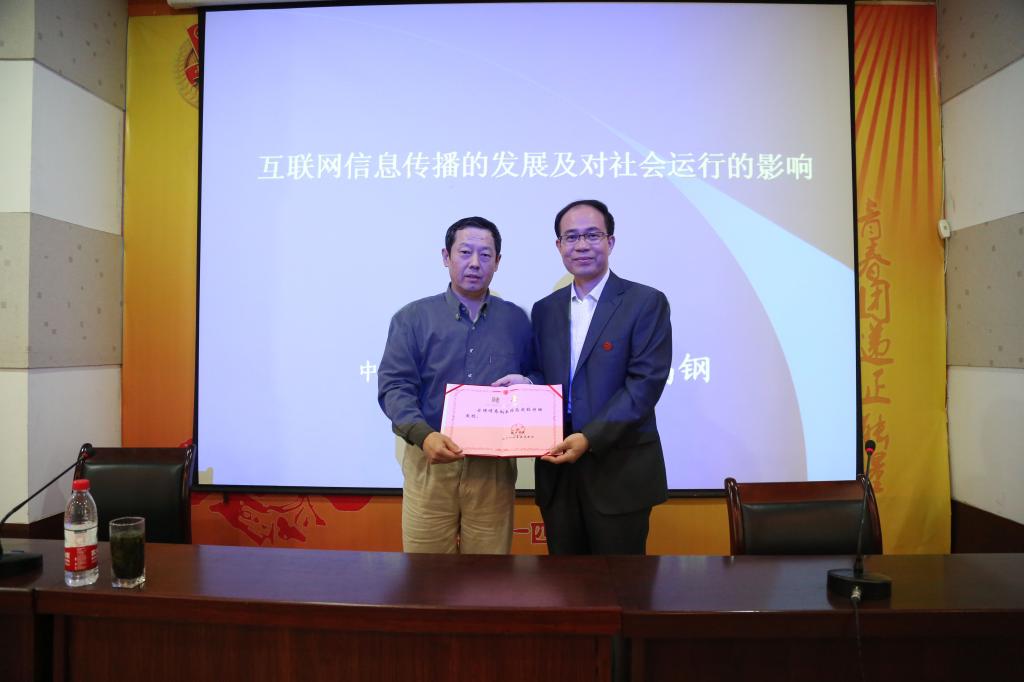 10月13日14时,中国人民大学新闻学院教授、博士生导师高钢应我校tyc234cc太阳成集团之邀,在A-05报告厅做了以《互联网信息传播的发展及对社会运行的影响》为题的学术报告。王选年校长为高钢教授颁发特聘教授证书。