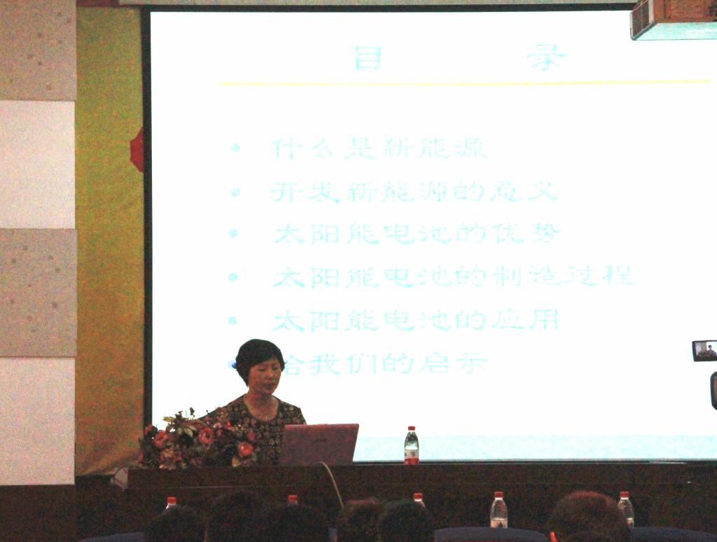 接着,张教授将她长期研究的太阳能电池的优势、工作原理和制造过程做了详细的讲解,并介绍了国外在使用太阳能方面的先进做法,展望了太阳能推广的广阔前景,最后,启发我们做好环保宣传,做节能减排的践行者,给新闻传播系师生上了一堂生动精彩的科普课。