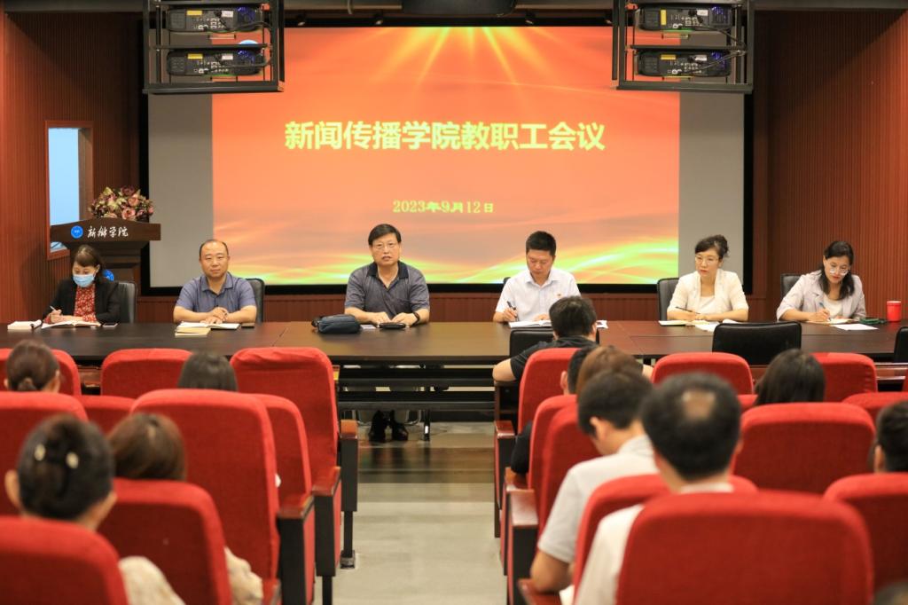 9月12日下午,tyc234cc太阳成集团名誉院长,中国传媒大学原副校长任金州教授到tyc234cc太阳成集团指导新学期学科建设工作,会议在A12号楼审片室举行,学院全体教师参会,共同接受指导。