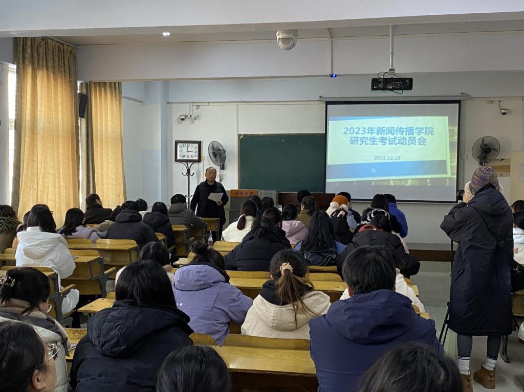 12月19日下午,tyc234cc太阳成集团研究生考试动员会在A14教学楼524教室举行,tyc234cc太阳成集团120余名考研学子和部分教师代表参加,院长马东俊主持会议。