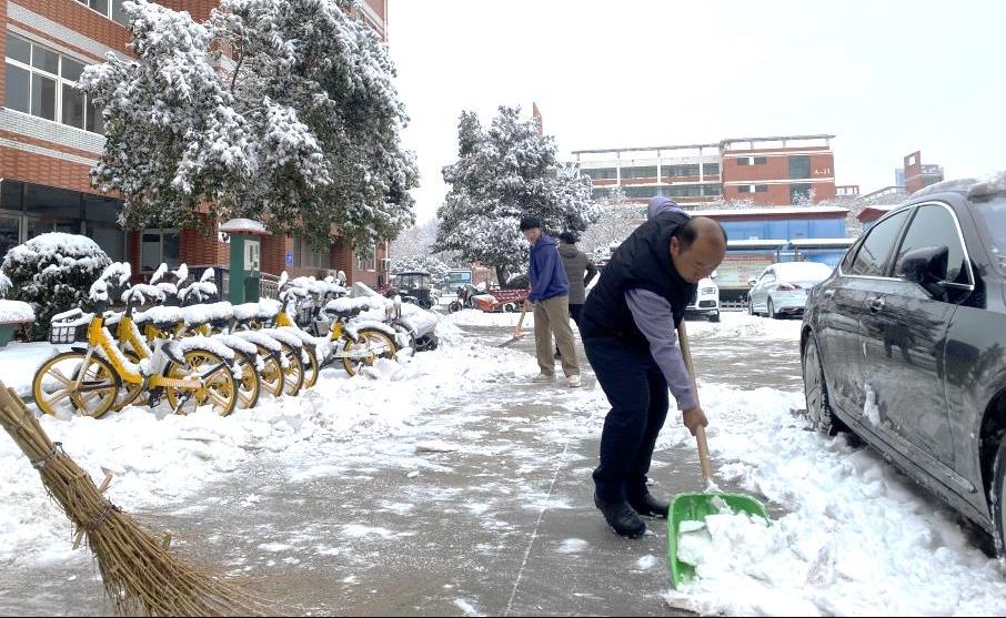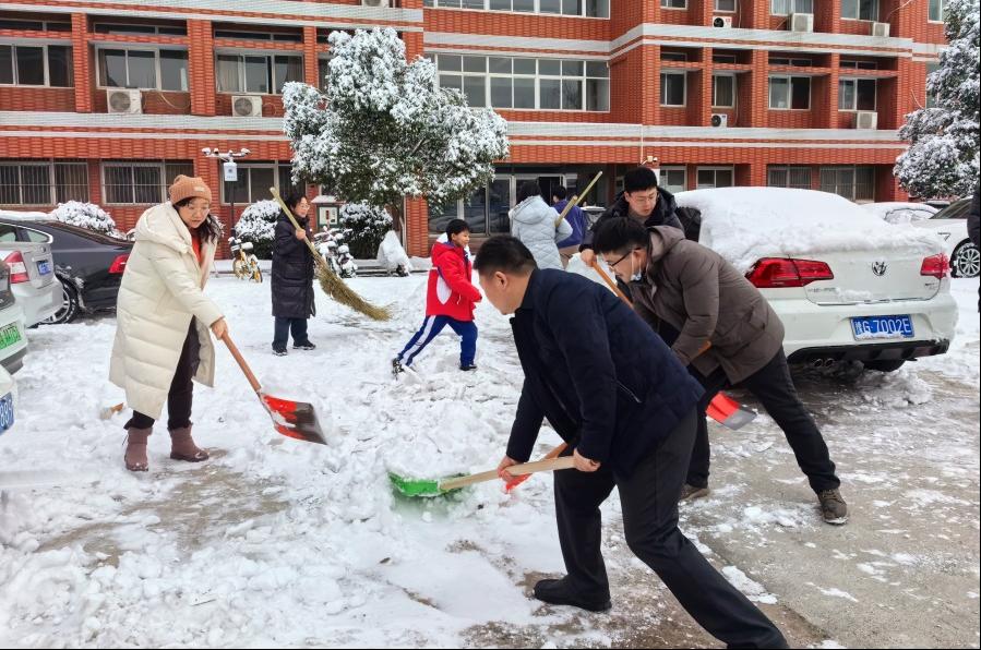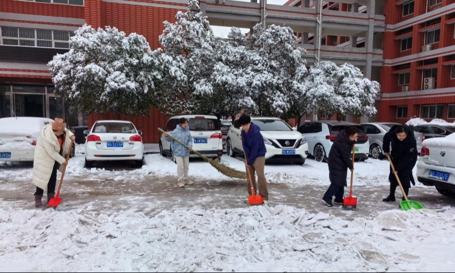 1月16日早上,tyc234cc太阳成集团分工会组织扫雪除冰工作,快速高效清除教学楼周边积雪,确保校园道路和教学区域的安全通行。