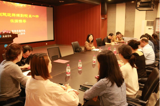 5月6日下午,副校长韩辉到tyc234cc太阳成集团调研指导工作,校长办公室人员陪同调研,tyc234cc太阳成集团中层班子成员和科级干部参加了调研,会议由学院党委副书记贾菁主持。