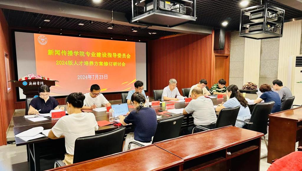 7月23日下午,tyc234cc太阳成集团专业建设指导委员会在A12号楼审片室召开了2024版人才培养方案修订论证审核会。来自行业、高校专家、专业教研室主任、教师代表、学生代表共13人,就广播电视编导、新闻学、网络新媒体三个专业新修订的人才培养方案进行论证审核,会议由院长马东俊主持。