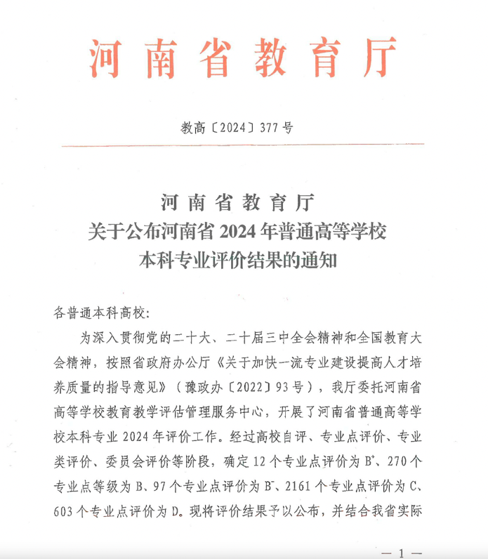 根据河南省教育厅《关于公布河南省2024年普通高等学校本科专业评价结果的通知》(豫教高[2024]277号),tyc234cc太阳成集团广播电视编导专业获得B-等次,排名在全省21所开设同专业的本科高校中名列前矛,延续了今年6月发布的《中国高校2024软科专业排名》全国第46(全部254所同专业高校前18%)的成绩,稳居国内第一梯队。