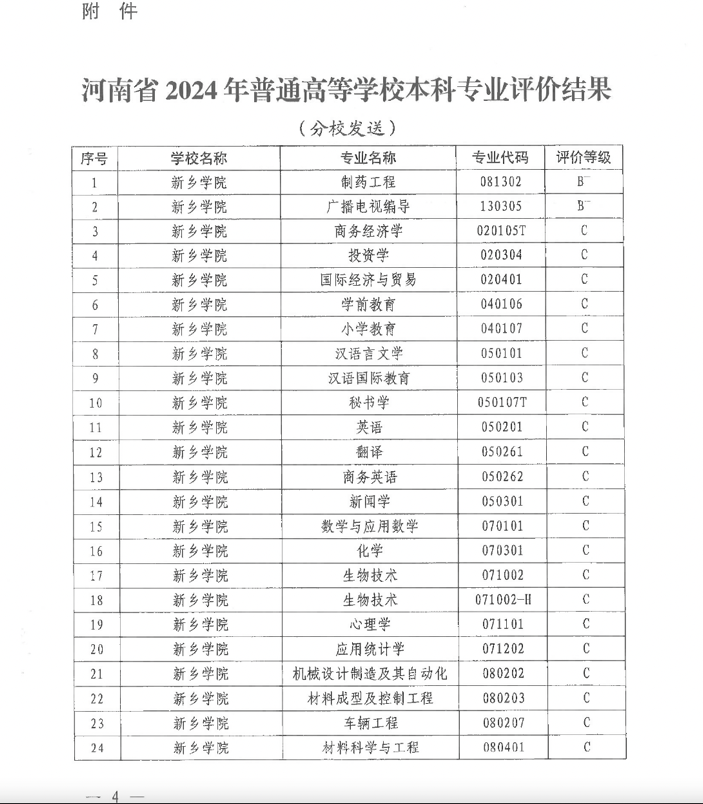 此次全省本科专业评价工作,综合省内各高校本科专业日常教学、学科建设、毕业生就业等因素,按照提升质量、优化结构、适配需求、培育特色的目标进行精准对照,经过高校自评、专业点评价、专业类评价和委员会评价等阶段,确定379个专业点评价为B-及以上,2161个专业点评价为C,603个专业点评价为D。在我校68个专业(59个参评)中,广播电视编导和制药工程两个专业获评B-级,实现历史突破。